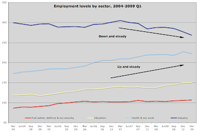 Of course, reasoned our seasoned policy morons, we simply have no alternative to raising taxes everywhere, for the public sector wages must be paid at an increasing rate. Never mind recession and Government promises to cut the public sector excess fat - if anyone had any mistaken beliefs that this Government is serious about tackling our state of public sector insolvency, hold your hope no longer. CSO figures for public sector employment and earnings released yesterday show once again that Brian Cowen is hellbent on robbing the ordinary taxpayers to pay for public sector cronies' privilege to earn lavish wages and perks. Public sector wages rose 3.4% yoy last month and public sector employment was up 1,000. So let's tax and borrow our way to pay public sector wages and pensions, should we? Irish Economic Model (as opposed to a real economic model) at last.