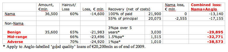 • Anglo Irish Bank expected supports are likely to exceed the overall decline in our GDP by a factor of more than 1.5 times (constant prices GDP fell €20.26bn between 2007-2009). Thus Anglo alone will cost Irish economy more than the entire Great Recession;