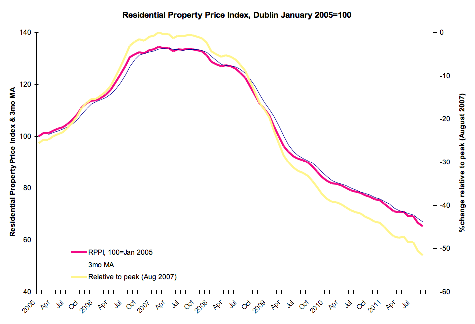 - Deposits from Irish residents in IRL6 were up from €192,431mln in August to €193,929mln in September, prompting cheers from the Irish Times and Department of Finance, among others. Mom rise of 0.78% or €1,498mln contrasts a 22.22% decline yoy in very same deposits or €55,393mln loss. In other words, to get us back to September 2010 levels (not exactly healthy ones) at current rate of mom increase would take 37 months. In the last three months, on average, deposits were down €26,337mln compared to 3 months through June 2011 (-12.05%).