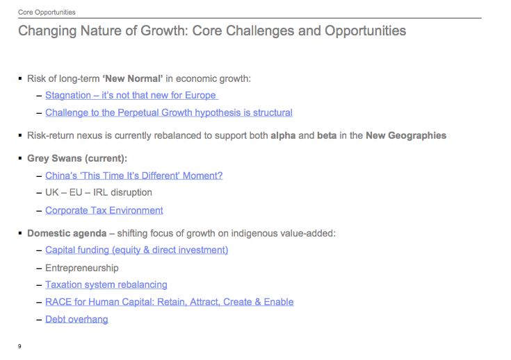 - The 1990s convergence race for Ireland to catch up with the EU capital and income levels - something that is now firmly exhausted as the potential for growth; and