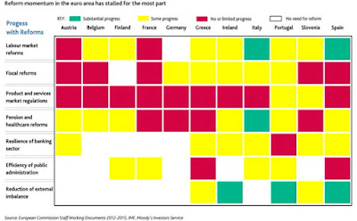 An interesting heat map from Moody's covering the deteriorating pace of reforms in the euro area: