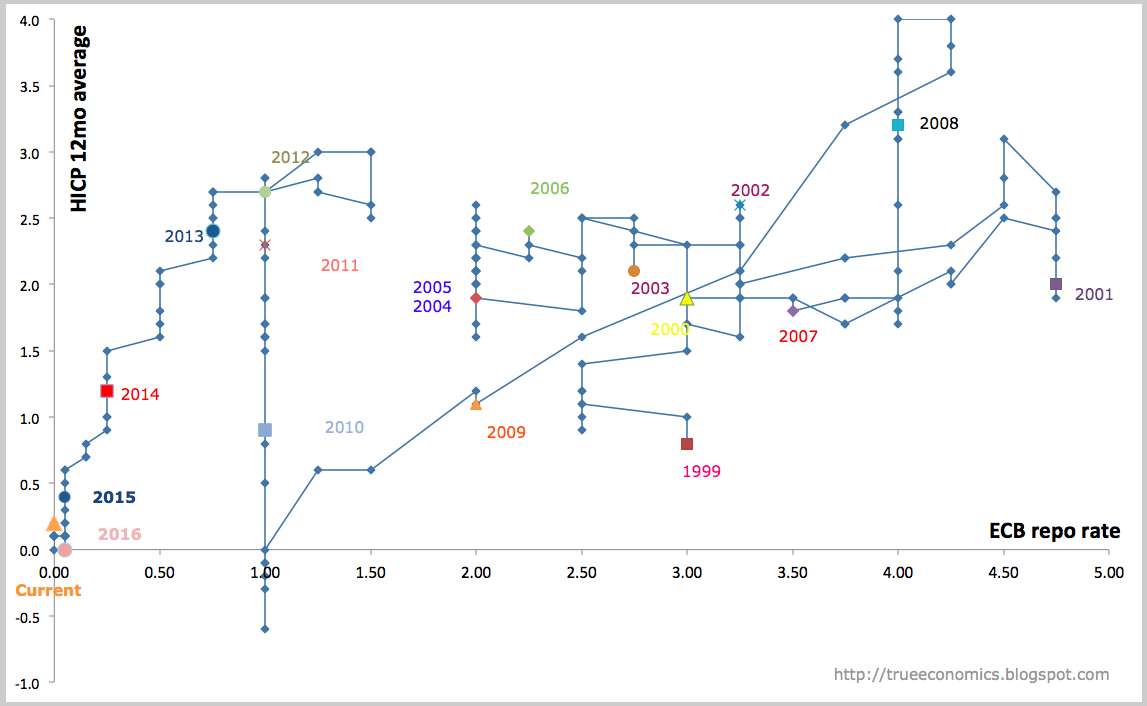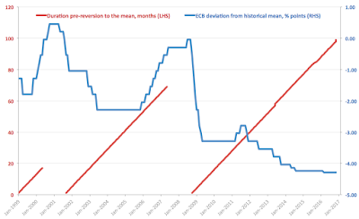 For ECB, current rates environment is historically unprecedented. Based on the data from January 1999, current episode of low interest rates is now into 100th month in duration (measured as the number of months the rates have deviated from their historical mean) and the scale of downward deviation from the historical ‘norms’ is now at 4.29 percentage points, up on 4.24 percentage points in December 2015.