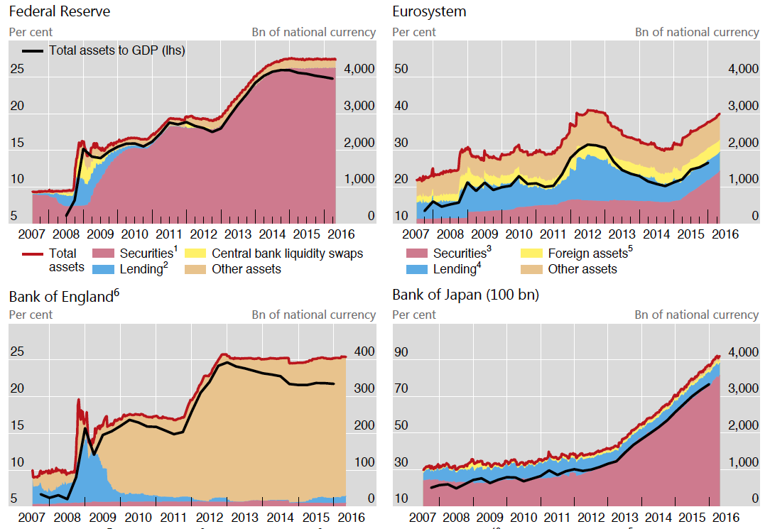 - “the measures are generally best regarded as exceptional, for use in very specific circumstances. Whether this will turn out to be the case, however, is doubtful at best and depends on more fundamental features of monetary policy frameworks”. Wait, what? Ah, here it is explained somewhat better: “They were supposed to be exceptional and temporary – hence the term “unconventional”. They risk becoming standard and permanent, as the boundaries of the unconventional are stretched day after day.”