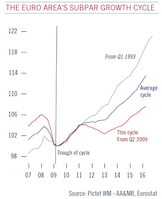 Europe's strong, convincing, systemic recovery ... the meme of the European leaders from Ireland all the way across to the Baltics, and save for Greece, from the Mediterranean to Arctic Ocean comes to test with reality in the latest Pictet Quarterly and if the only chart were all you needed to see why the Continent is drowning in populist politics, here it is: