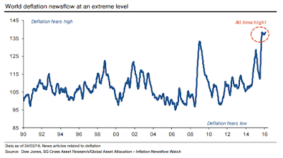Per SocGen, thus, all the QE and monetary activism have gone pretty much nowhere, as deflationary expectations are hitting all-time record levels. And that with the U.S. inflationary readings coming in relatively strong (see http://www.bloomberg.com/news/articles/2016-03-03/socgen-global-deflationary-fears-just-hit-an-all-time-high).