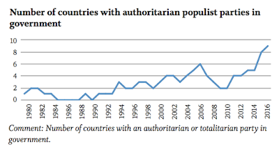 Personally, I don’t think this is reflective of the voter demand for populism, but rather lack of supply of pragmatic voter-representing leadership anywhere near the statist political Centre. After decades of devolution of ethics and decision-making to narrow groups or sub-strata of technocrats - a process embodied by the EU systems, but also present at the national levels - European voters no longer see a tangible connection between themselves (the governed) and those who lead them (the governors). The Global Financial Crisis and subsequent Great Recession, accompanied by the Sovereign Debt Crisis and culminating (to-date) in the Refugees Crisis, all have exposed the cartel-like nature of the corporatist systems in Europe (and increasingly also outside Europe, including the U.S.). Modern media spread the information like forest fire spreads ambers, resulting in amplified rend toward discontent.