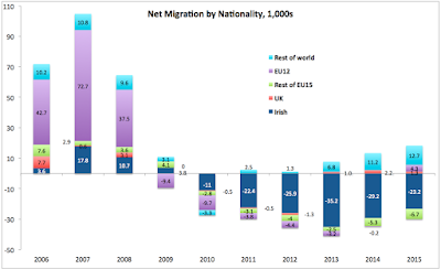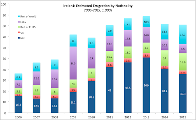 Current rates of emigration are running ahead of the 1987-1995 period average. Back then, net emigration from Ireland averaged 14,811 per annum. Over the last four years, the average net outflow of people from this country stood at 30,600 annually.
