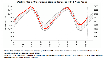 Again, supply-demand analysis does not explain this. Fundamentals analysis focuses on abnormally cold weather in early 2008, which pushed spot prices up and resulted in higher levels of exploration activity. Production capacity increased, but demand collapsed. Fine theory, except, recall prices are down more than 50%, although US Energy Department expects natural-gas consumption to decline by only 1.3% in 2009.