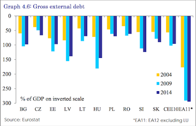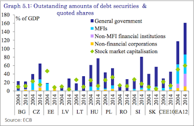 Scary bit: "The negative impact of the 2008/09 global financial crisis as well as the following euro-area sovereign debt crisis on financial conditions in the CEE10 revealed that, despite relatively lower general government debt levels (compared to the EA12 average), some CEE10 countries might still encounter problems to (re-)finance their public sector borrowing needs during periods of heightened financial market tensions as their domestic bond markets are in general smaller and less liquid".