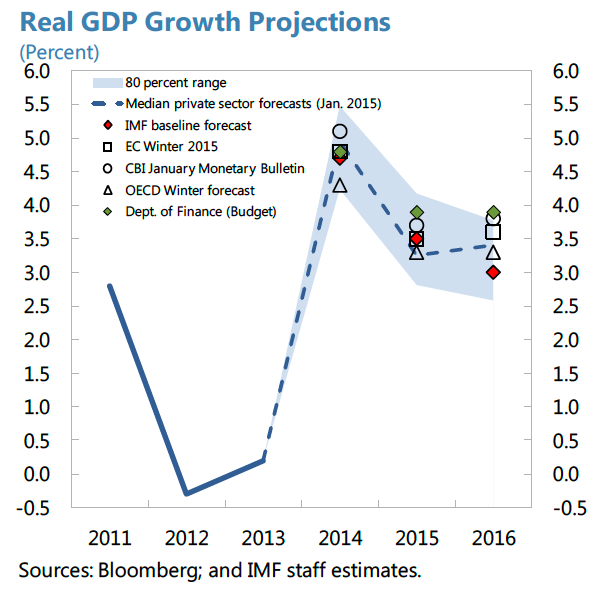 All of the IMF assessment, disappointingly, still references Q1-Q3 2014 figures, even though more current data is now available. Overall, the IMF is happy with the onset of the recovery in Ireland and is full of praise on the positives.