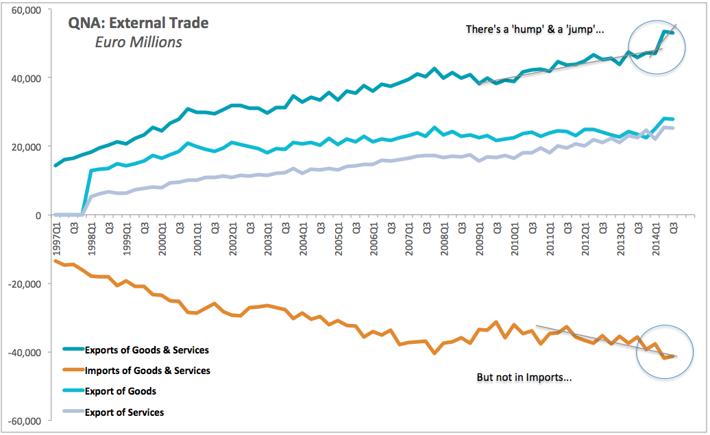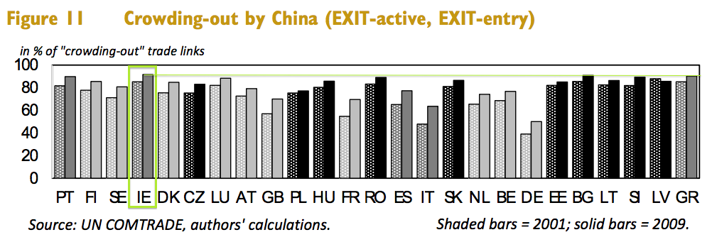 "Small and peripheral countries are more exposed to competition from China than the large EU export nations." And Ireland is even more exposed here, since we rely almost exclusively on exports as the driver for growth.