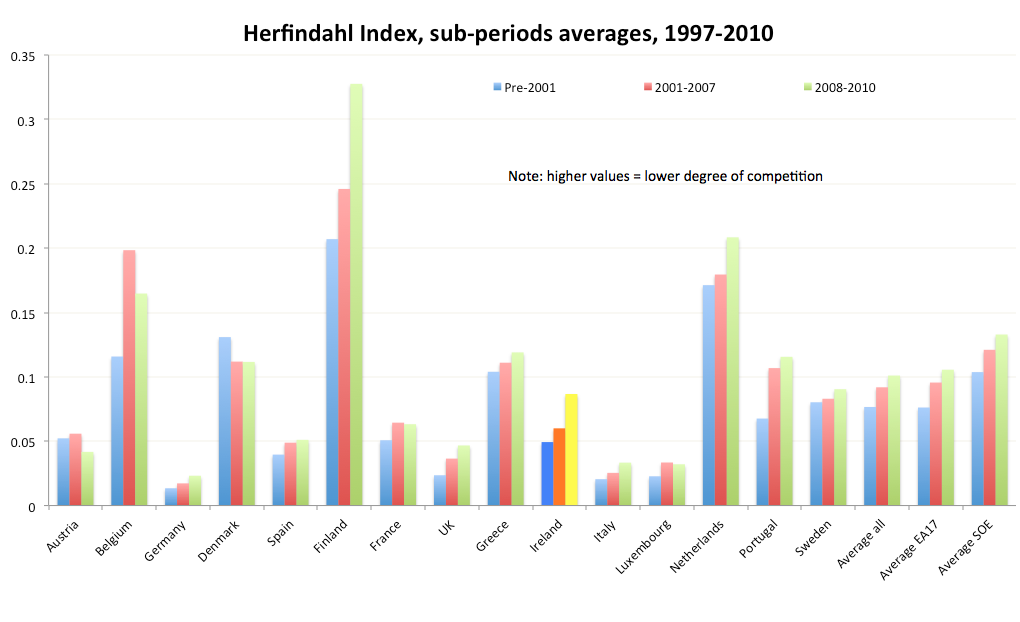 Following the High Court judgment in the case involving rent review for Bewley’s Café on Dublin’s once swanky now increasingly dilapidated Grafton Street, one of the premier commercial real estate brokerages issued a note to its clients touching upon the expected or potential fallout from the case. The note mentions the stress the case might be causing many landlords sitting on ‘upward only rent review’ contracts and goes on to decry the possibility that with the Court’s decision in some cases rents might now revert to open market valuations. One does not need a better proof than this that Irish domestic sectors are nowhere near regaining any serious competitiveness. Instead of embracing self-correcting supply-demand reflecting market pricing, Irish domestic enterprises still seek protection and circumvention of the market forces to extract rents out of their customers. That’s one hell of a ‘the best small country to do business in’ culture, folks.