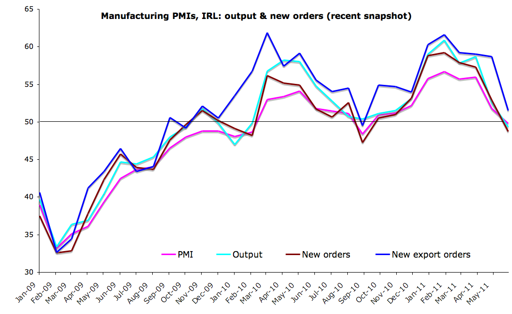 NCB released Irish Manufacturing PMIs earlier in the morning today and they make for a disheartening reading. Please keep in mind that these are generally volatile, so some interpretations of the short-term data require identifying a trend, rather than short-term fluctuations.