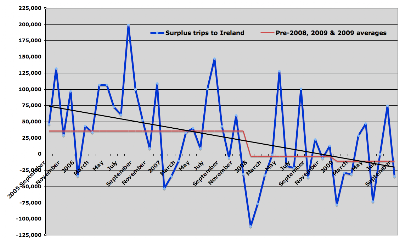 The above figures are gross and exclude trends for Irish travellers abroad. Including these: