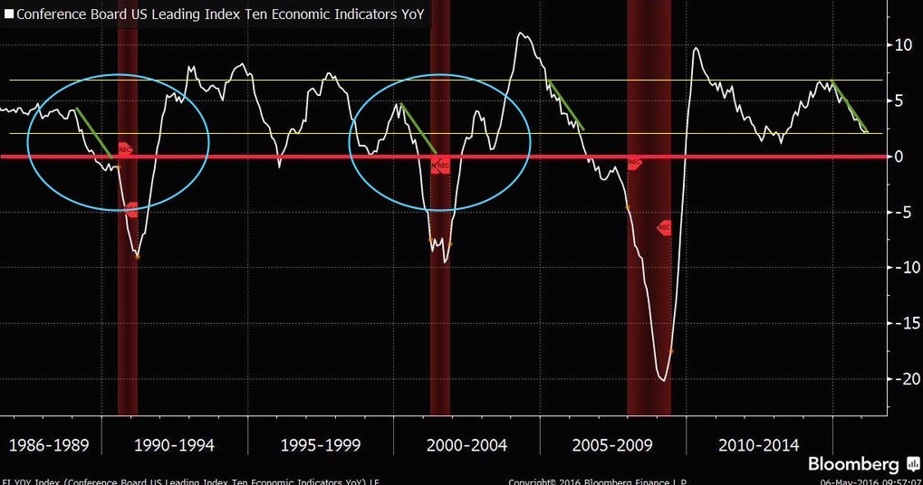 What Ken-omist from the Fed is referring to is the renewed momentum in the deterioration of the Leading Econ Indicators index that started in December (after a short 1-month flat) and has been going steady through March. The index has failed to bounce up in consecutive 9 months. Current Economic Conditions index is now converging downward to LEI, suggesting that unless things improve significantly in the next couple of months, simple psychology of the markets will lead to a renewed push down on LEI (the vicious cycle of self-fulfilling prophecies might commence).