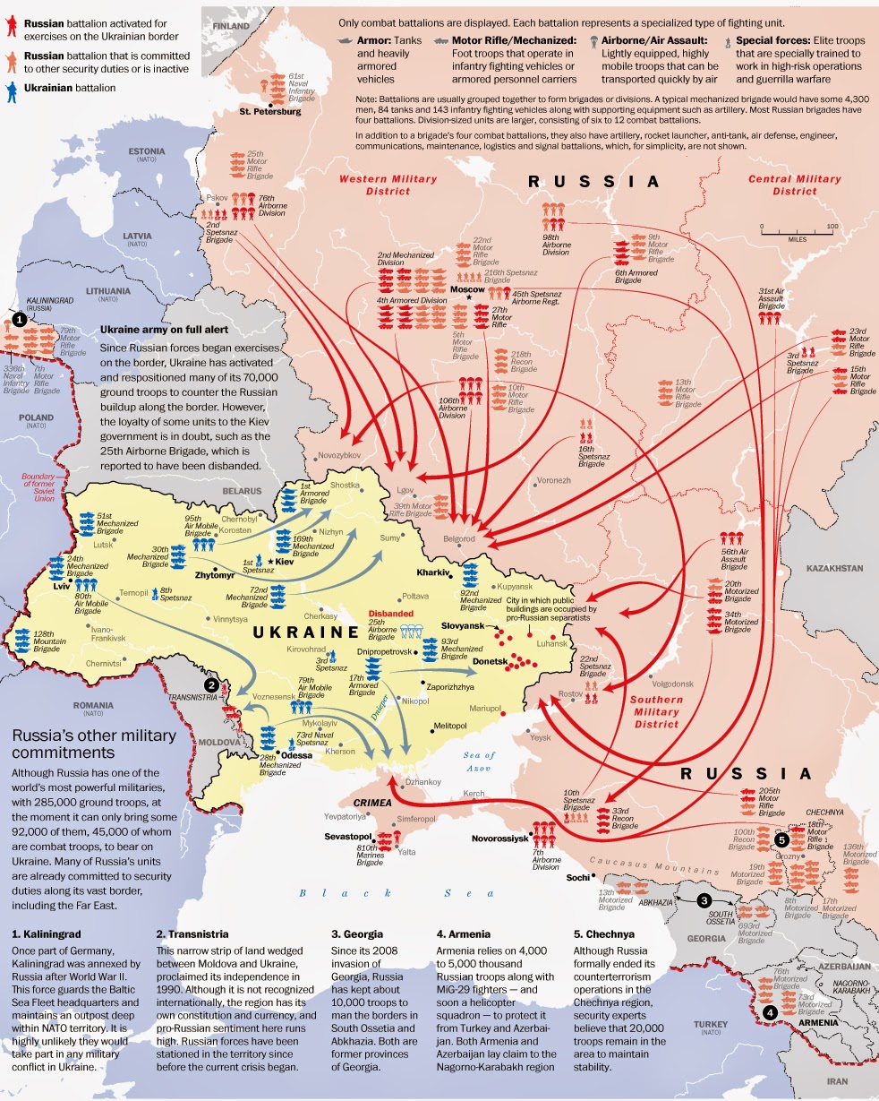 Here is a handy map showing movements of Russian and Ukrainian troops (http://www.washingtonpost.com/blogs/worldviews/wp/2014/05/02/map-how-ukraine-and-russia-are-moving-toward-war/):